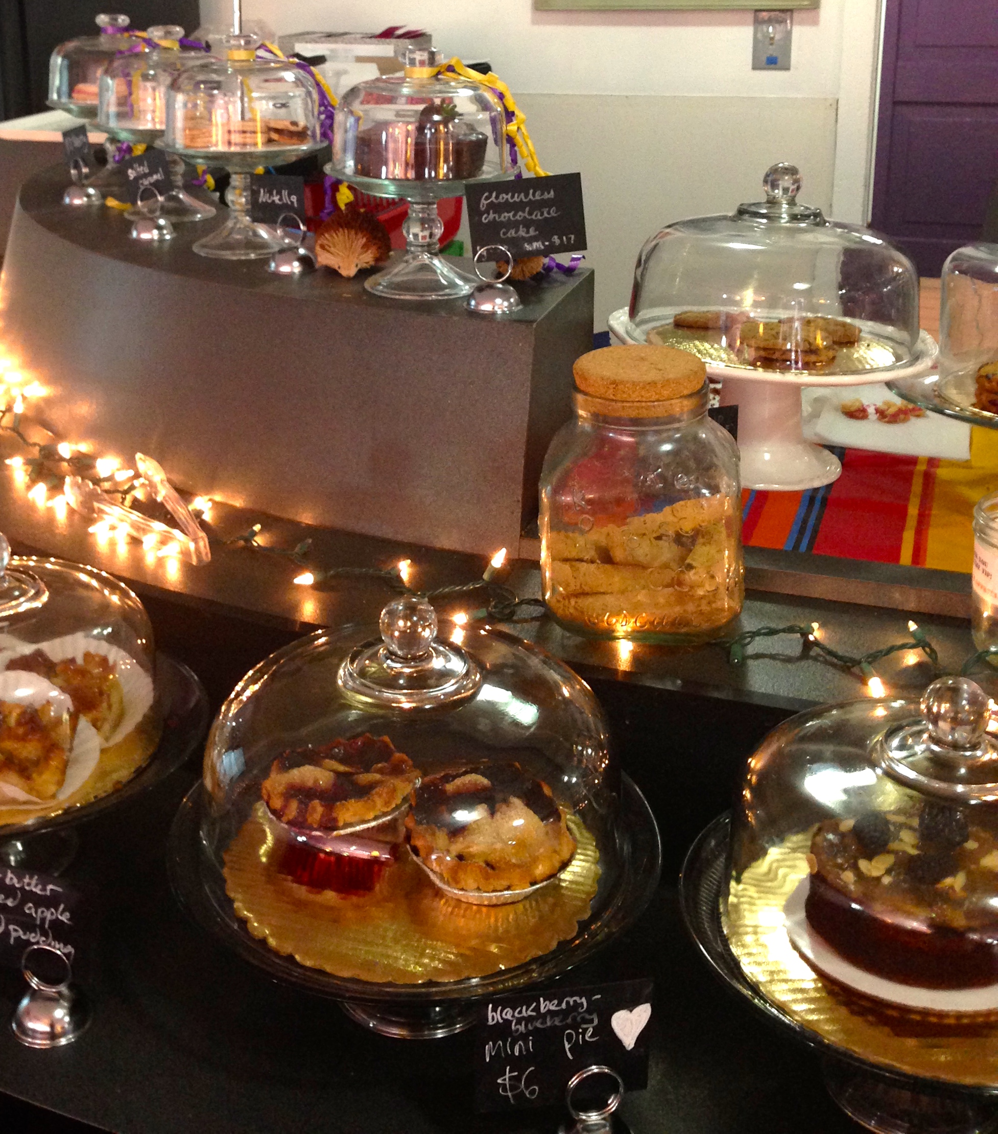 I had the pleasure of going to Violette on a sunny Wednesday afternoon. On a nice day like that, sunlight streams in through the windows, reflecting off of the glass cake-stands containing their delicious offerings. Strings of white Christmas lights line the walls and the display area, giving the whole place an angelic glow.