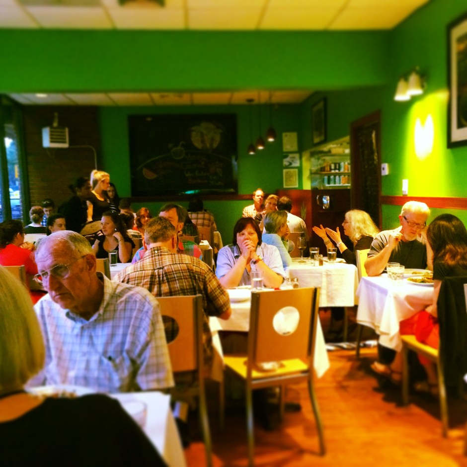 I walk into Red Lentil and the garish green walls immediately overwhelm me. I don’t know where to look. My eyes jump from the white square ceiling tiles to the oddly fancy linens. The haphazardly placed tables add to my initial confusion. As the hostess leads my sister and I to a table next to the window, I wish that we just went to Life Alive in Central Square. At the first glance of the menu, however, I know that this place will be good. The menu offers eclectic cuisine options – edamame to a hummus platter, Belgian sweet potato fries to chips and guacamole, Chimichurri Seitan and Jamaican Jerk Tempeh to Pistachio & Coconut Herb-Encrusted Tofu. I now begin to understand the seemingly random décor of the restaurant.