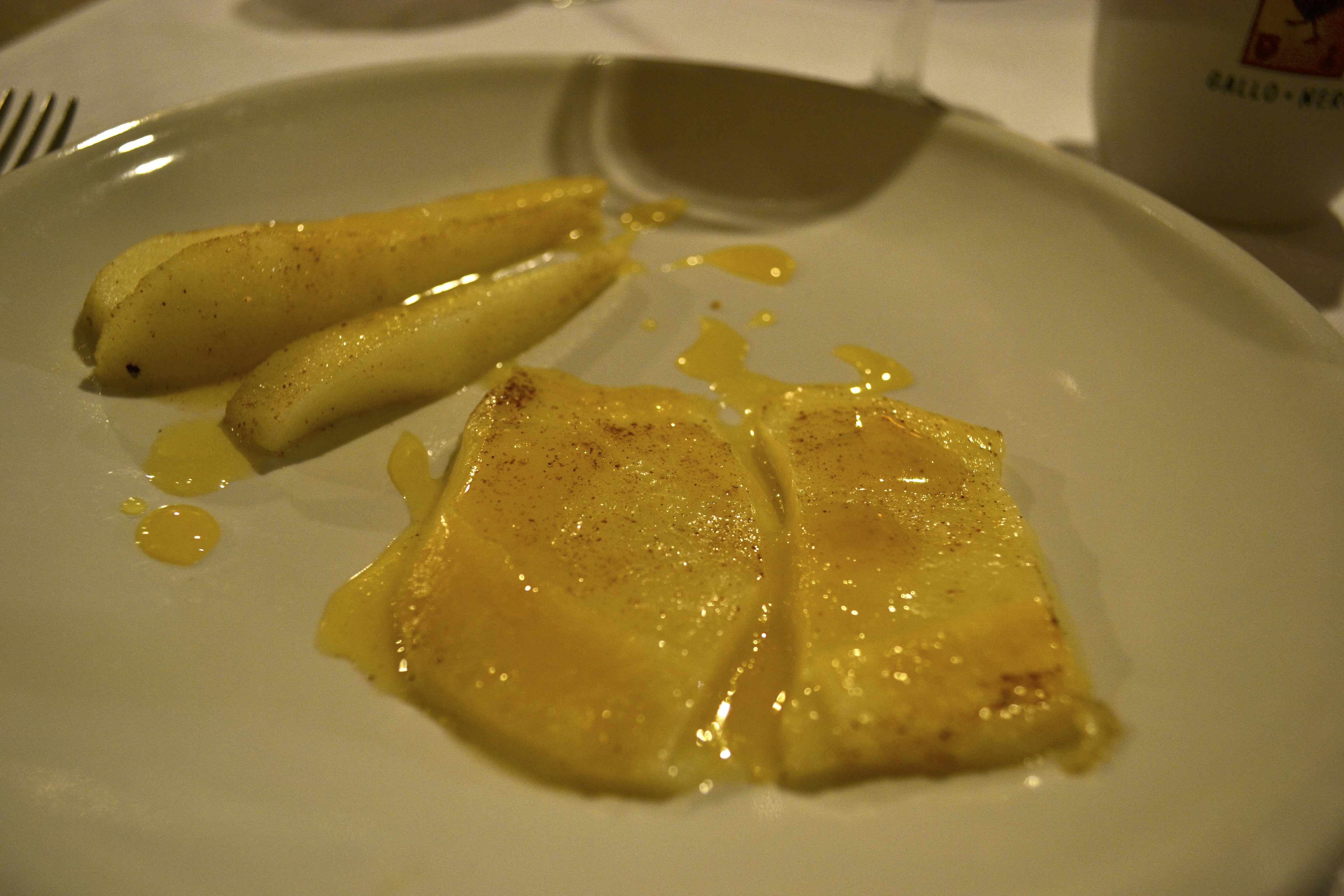 Maybe if we went back five centuries or so, this would’ve been standard fare (it was, after all, a medieval restaurant). If this is the case, take me back to the 1500s. Because arguably the best dish I had during eight weeks in Italy (excluding the daily gelato, of course) was a simple plate of warmed and slightly melted pecorino fresco, served with lightly baked pears, all drizzled with honey and sprinkled with cinnamon.