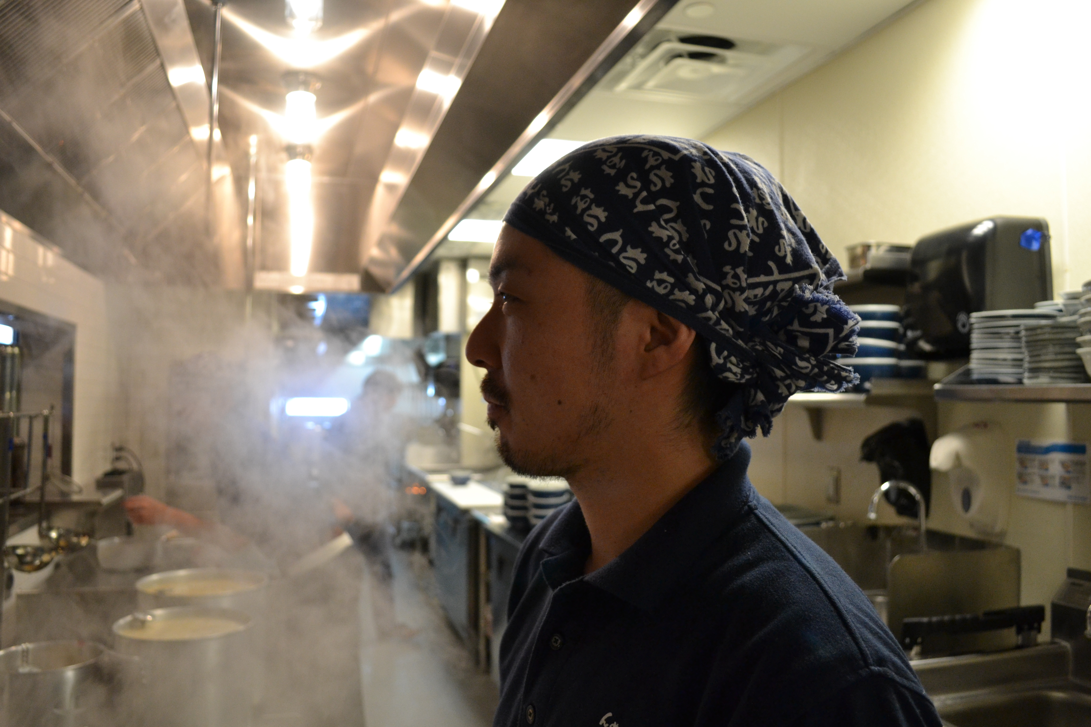 Here Head Chef Igo-san stands akimbo, taking a moment of rest before jumping back on the line. A veteran team member from Santouka’s Seattle location, Igo-san is especially familiar with, as well as proud of, the quality of ingredients he gets to work with everyday at Santouka. The noodles are made from a unique blend of wheat made specifically for Santouka that creates a full-bodied noodle which holds onto the broth flavor. While the more traditional ingredients, such as nori, umbroshi, and miso, are imported from Japan, the pork comes from the US to ensure freshness before it undergoes the secret process of cha shu.