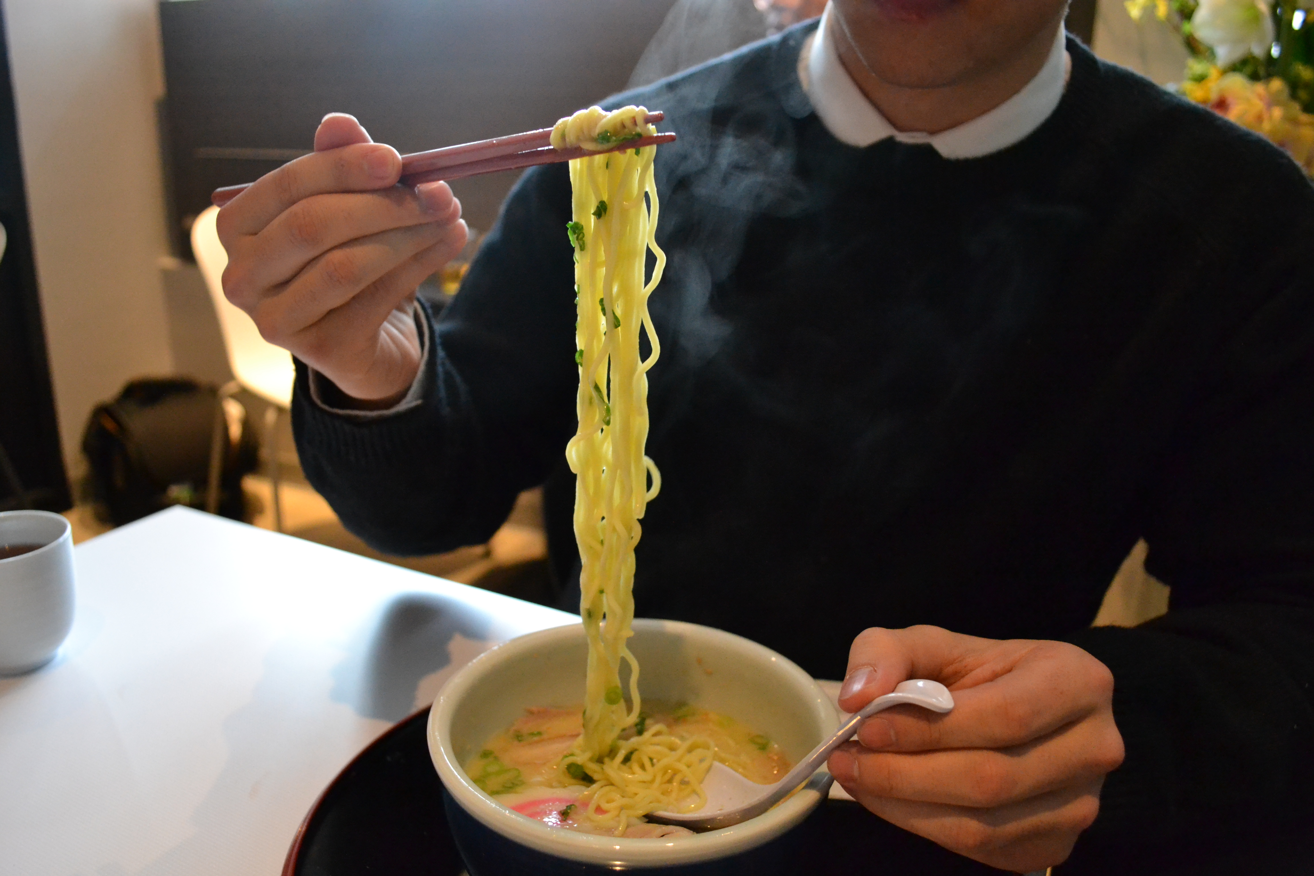 Tackling one of these mighty bowls can be intimidating– where does one start? The founder, being so inspired by the Japanese comedy Tampopo, introduced ramen eating technique through one of the movie’s iconic scenes in which an obsessive old man demonstrates with extreme affection how to eat ramen. (It’s definitely worth a look; check it out here).