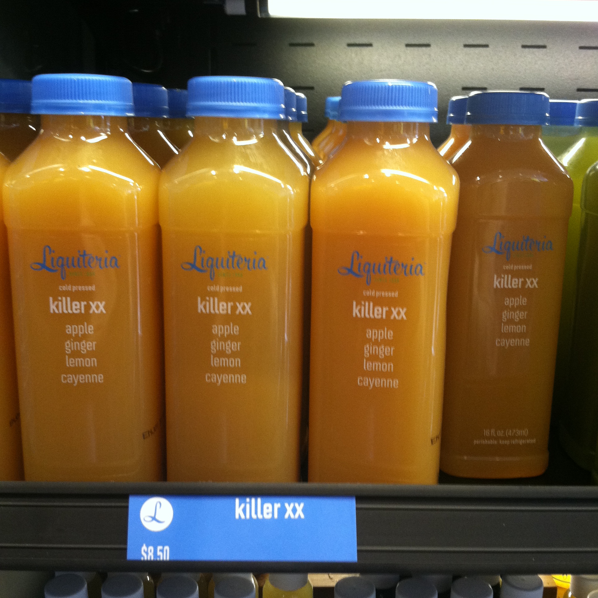 Liquiteria offers twelve different juice flavors daily, ranging from the obligatory All Greens (Kale, Spinach, Romaine, Parsley, Celery, Cucumber) to some funkier blends, such as Turmeric Tonic (Turmeric, probiotic, lemon, maple syrup), the unfortunately-colored Skin Trip (Parsley, Spinach, Cucumber, Carrots), and my personal favorite, the refreshing, much-needed-wakeup-call-to -your-taste-buds, the Killer XX (Apple, Lemon, Ginger, Cayenne). As a seasonal extra, they are currently offering Watermelon juice, which essentially is like drinking the 4th of July from a plastic bottle. Each juice flavor comes in a 16 oz bottle, and is always available in the grab and go section.