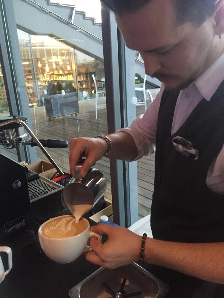 I watched the demonstration carefully, noting that the latte artist tipped the cup before pouring anything in, watching his steady hands design swans, acorns, and hearts, moving ever-so-slightly to produce the most majestic swirls and shapes.