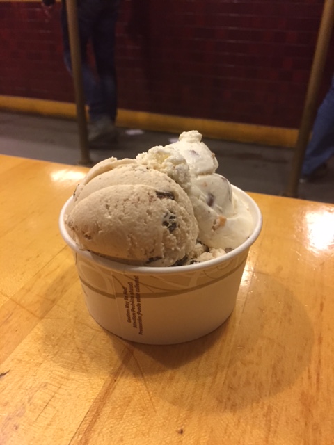 Some of the flavors were amazing; some were less impressive. The butter almond was fantastic, but after a few bites I realized the peanut butter chip wasn’t one to order again. Cactus pear sorbet? Such an interesting option (and color). But while yummy initially, it was just too sweet and left me with a taste of pure sugar. The chocolate mousse is fantastic (better than Toscanini’s cocoa pudding in my opinion) and their chocolate chip cookie dough is great (as all chocolate chip cookie dough flavors are).