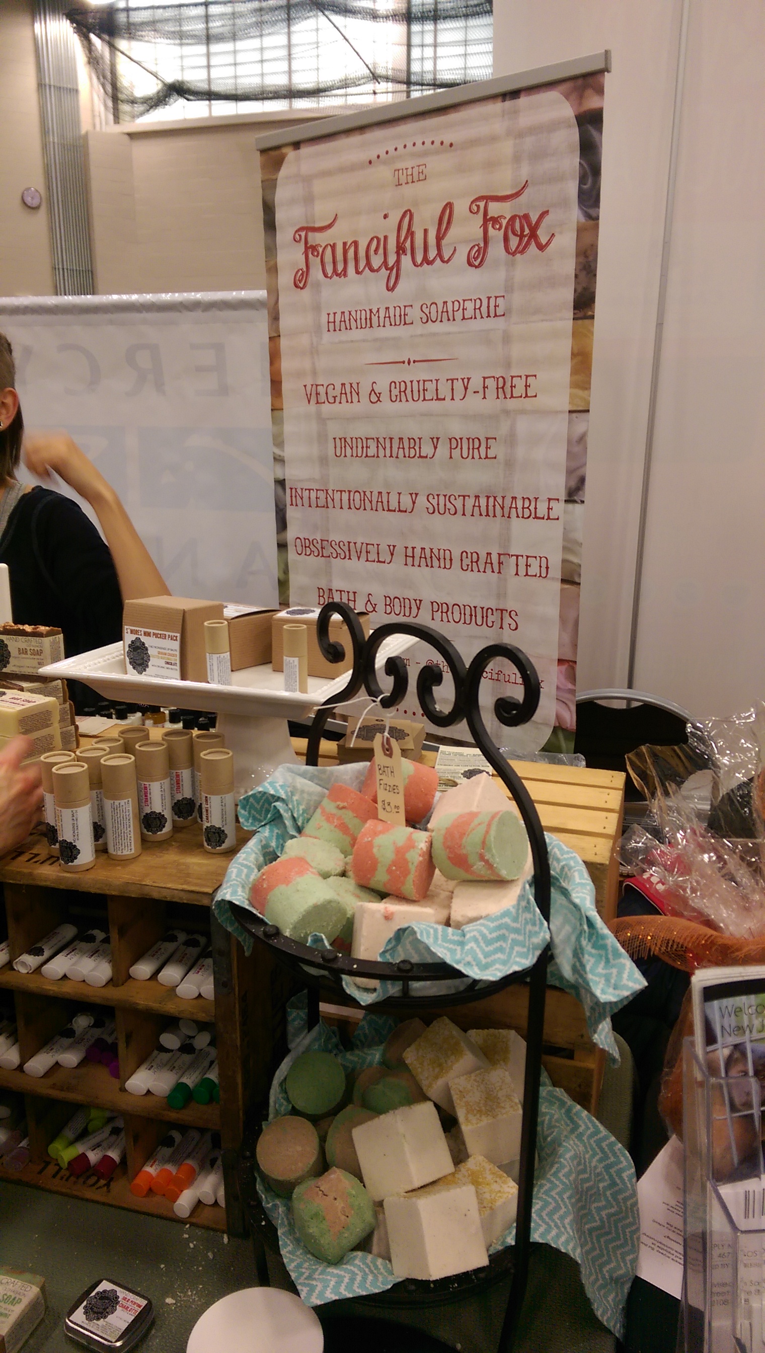 IMAG0859Gradually, as my hunger abated, I also began to focus on booths that exhibited non-food items. One table displayed children’s books that explained vegetarianism in a fun, kid-friendly way. Another table featured hand-made body products, including brightly colored soaps and fragrant balms.