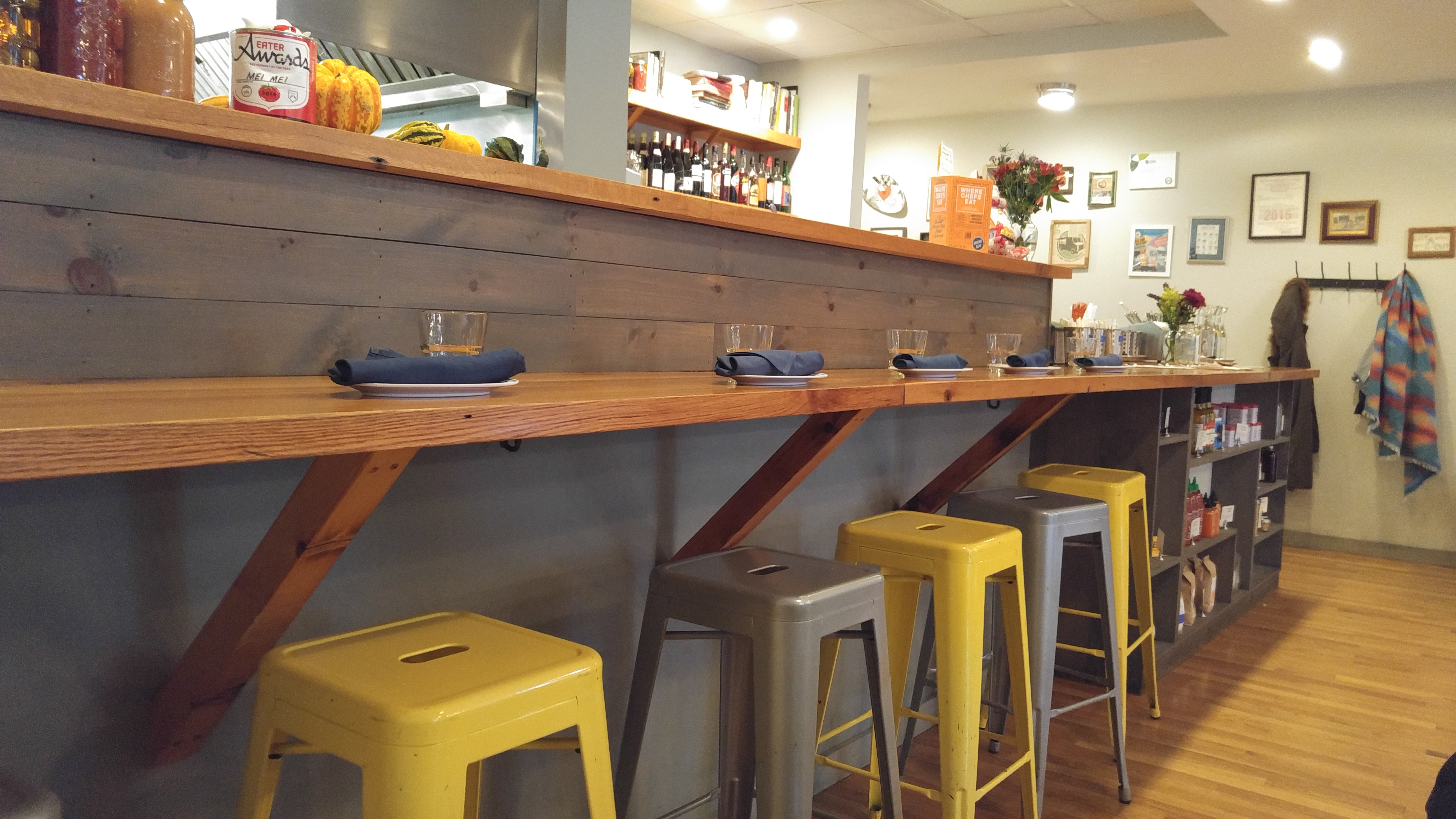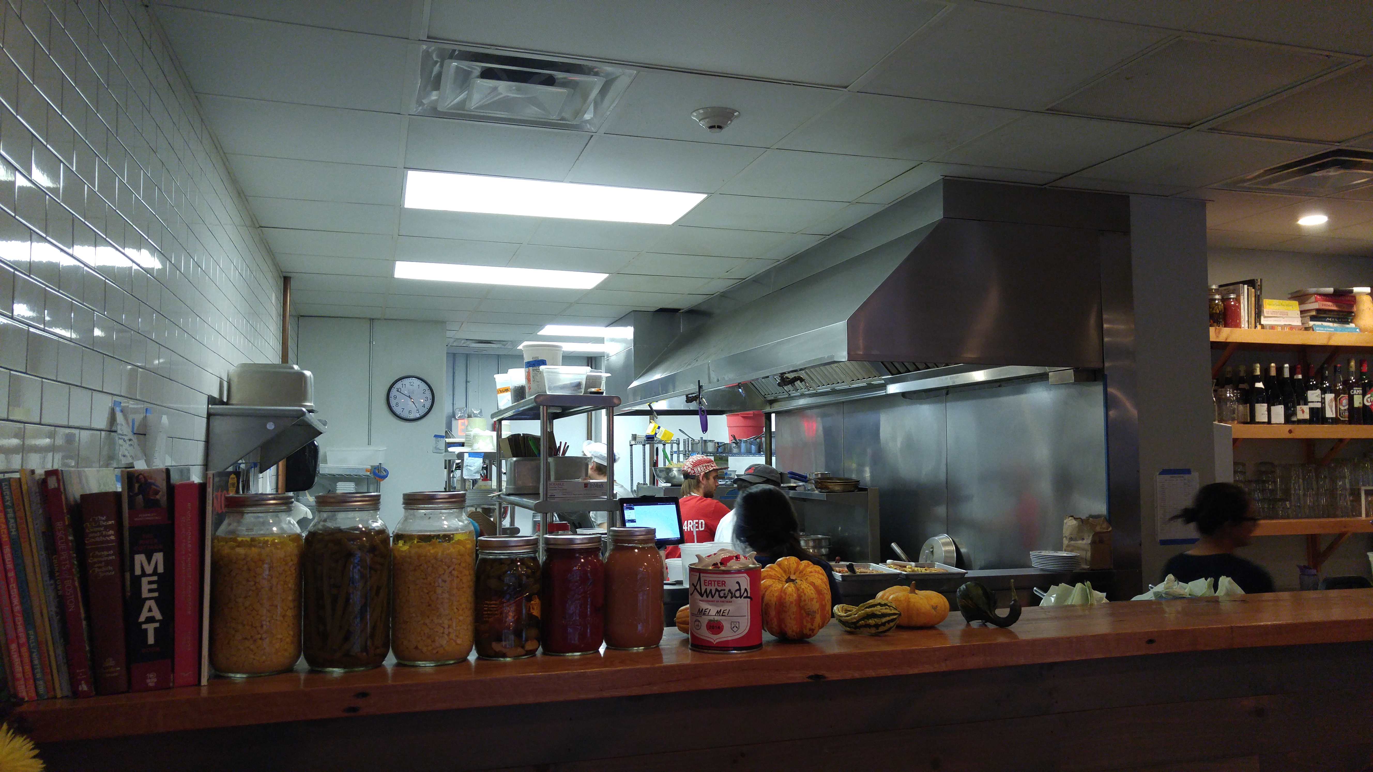 Mei Mei’s restaurant in Fenway is a short walk from the T stop and conveniently located near Boston University. My friend and I arrived exactly between lunch and dinner, which proved to be a significant shift at the restaurant. Transforming from casual lunch counter to a more sophisticated sit-down establishment, Mei Mei demonstrates incredible versatility in its restaurant model. After placing our orders at the counter, we sat in the empty restaurant and waited comfortably for our food.