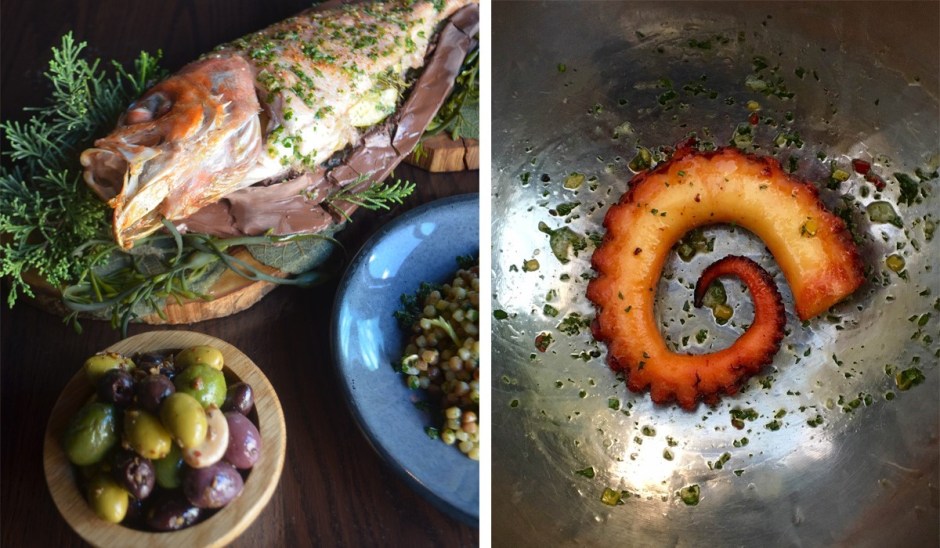 The head chef, Devin Broo, has an impressive resume as he worked at Restaurant Daniel, a former three Michelin Star restaurant (currently has 2 Michelin Stars), Bar Boulud in Boston, and the Elm Restaurant in Connecticut. His menu covers a wide variety of Mediterranean cuisines with connections to Spain and Greece. While classic small plates like patatas bravas (hot potatoes), bacalou croquettes (codfish cakes), and wood grilled octopus line the menu, there are many intriguing dishes like byrek (spinach pie), stuffed baby squid, and slow poached arctic char. In addition to the small plates, there are larger shared dishes like an Acadian redfish baked in clay.