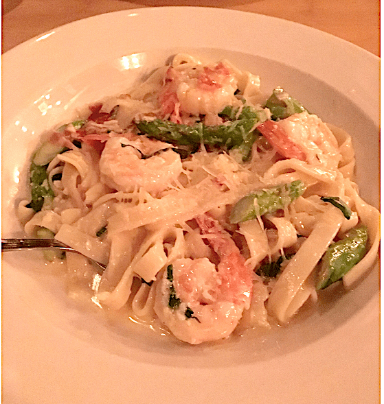 At first bite, the white wine cream sauce was divine. The parmesan and smoked bacon added a tangy note to the sauce that made the flavor linger in my mouth. The shrimp and asparagus, which were both extremely fresh, balanced out the heaviness of the pasta itself. The only complaint that I had was the bacon fat did make the pasta a bit greasy.